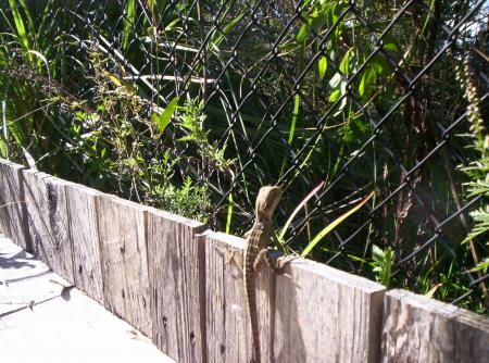We are GREEN ! Our new premises were built in approx the 1970's and so we are re-using an existing building rather than constructing new. The high ceilings, roof ventilation, a large roller door almost always open, and the expanse of the wetlands next door, means we rarely need to turn on fans for cooling. Every piece of paper is used both sides and then shredded and used as packing in the orders being posted out - advertising material that arrives in the letterbox (at home & work, and family & staff donate too) is also shredded. The cardboard boxes your orders are packed in are collected from local supermarkets and businesses. All our plastic containers are recycled and/or recyclable plastic. And the local wildlife approves - we are visited by water dragons and goannas, swamp hens, magpies, etc., as we are located on the edge of a local wetlands. (Pictured is a baby water dragon).