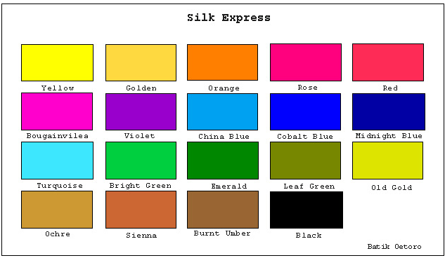 Silk Express and Silk Designer are liquid dyes for silk painting. They are inter-mixable.